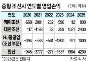 대한조선, HJ중공업, 케이조선 등 국내 중형 조선 3사도 HD현대, 한화오션, 삼성중공업 등 대형 3사와 함께 고공행진하고 있다. 2010년대 초반 이후 처음으로 중형 조선 3사가 동반 흑자를 기록하는 것은 물론 내년엔 모두 1000억원 이상의 영업이익을 낼 전망이다. 10년 전만 해도 조(兆) 단위 손실을 낸 중형 조선사의 부활을 이끈 건 역시 ‘조선업 슈퍼사이클’이다. HD현대중공업 등 대형 조선사의 독이 꽉 차자 중형 조선사로 일감이 넘어가는 ‘낙수효과’가 본격화한 것이다.